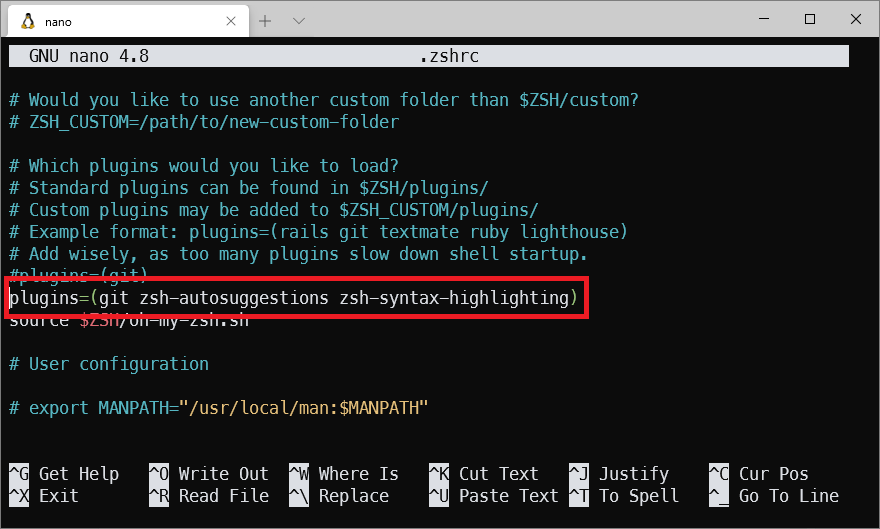 plugins=(zsh-autosuggestions zsh-syntax-highlighting)